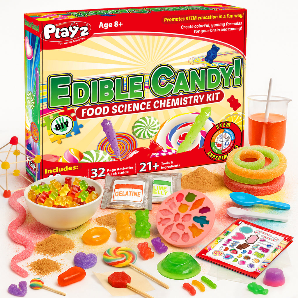 We love our Playz Candy kit! You have lots of recipes to experiment with. Easy step-by-step instructions with images, plus you can also get creative. Great STEM kit all around! Guaranteed you will have lots of fun food science with a Playz kit.