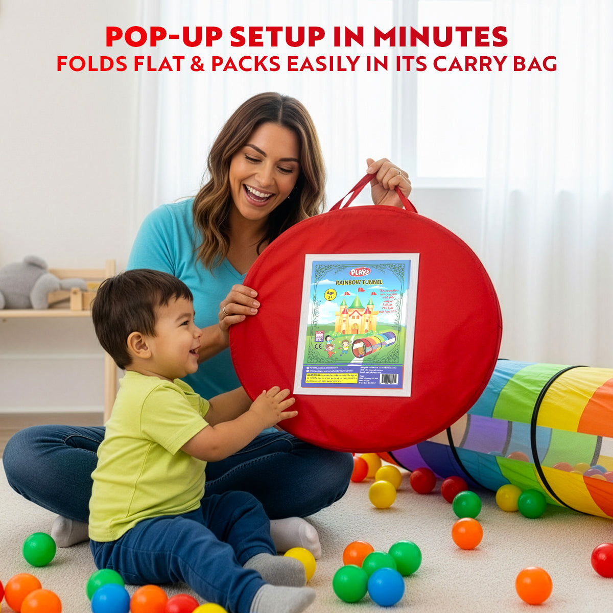- Quick Setup & Compact Storage – The pop-up tunnel unfolds in seconds and folds flat for easy travel or storage. Lightweight yet durable, it’s perfect for home, parks, or playdates.