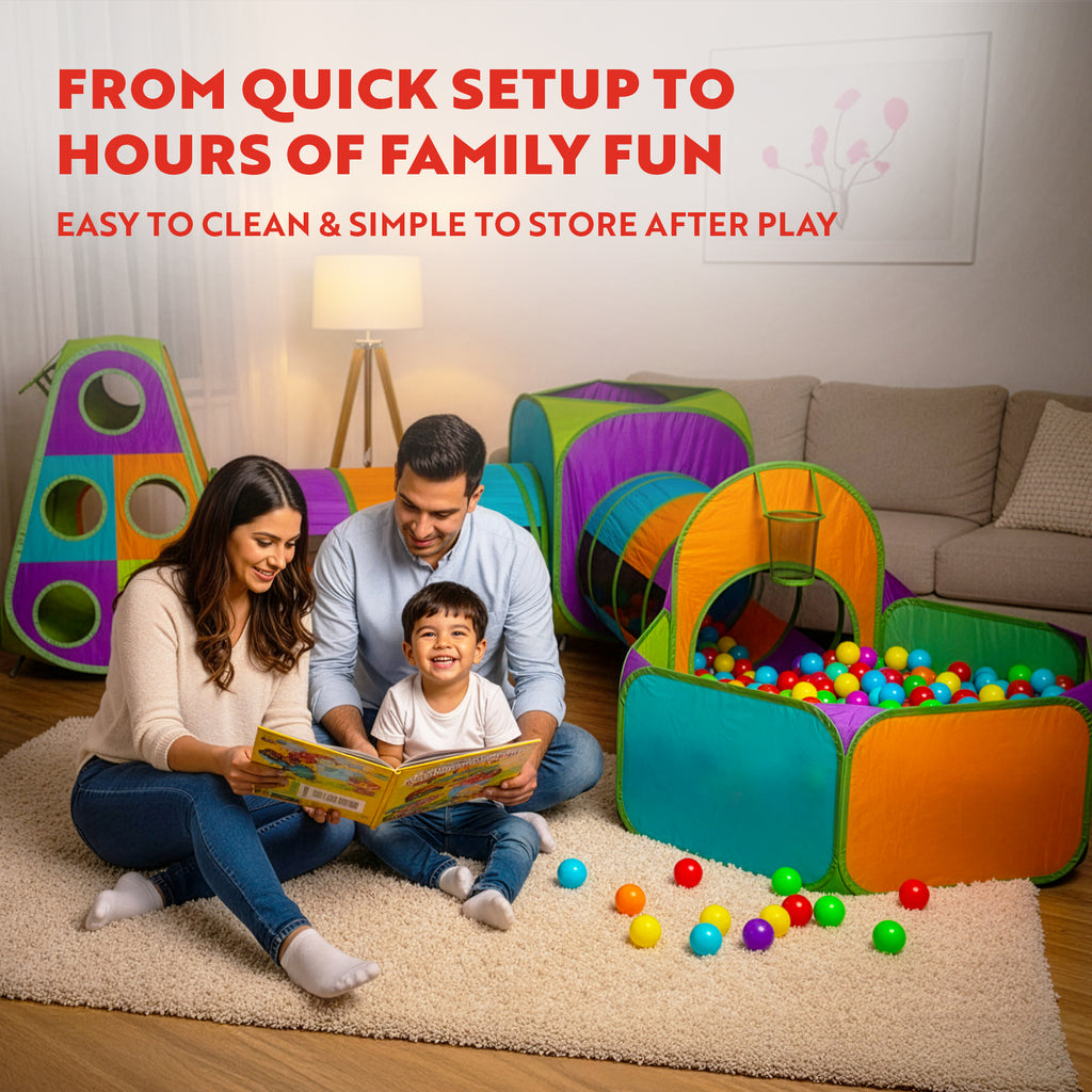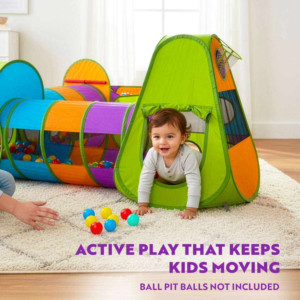- ★ TODAY ONLY: $̶99̶.̶9̶5̶ ★ 50% OFF TODAY! ★ Your child will love this premium maze of unique tents and tunnels. The vibrant colors and interchangeable pieces allow you to customize this multipurpose play set into dozens of different combinations. Use it as an outdoor obstacle course on the playground or an indoor playhouse filled with ball pit balls to slam dunk into the multiple basketball hoops.