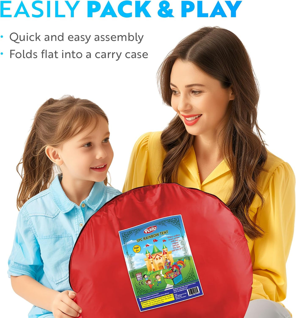 - INSTANT ASSEMBLY & STORAGE The entire Playz ball pit, play tent and crawling tunnels for kids set pops open in seconds! The toy tunnels fasten close with frustration-free easy-locks. The hut, cube cave & ball house fold away for flat storage in the included carry case. Easy-to-pack portable toy ball pit and kids tunnel tent bundle to take along to Grandma's home! Perfect kids tents indoor playhouses or outdoor use in the backyard, parks, playground, daycare, preschool, nursery, playgroups.